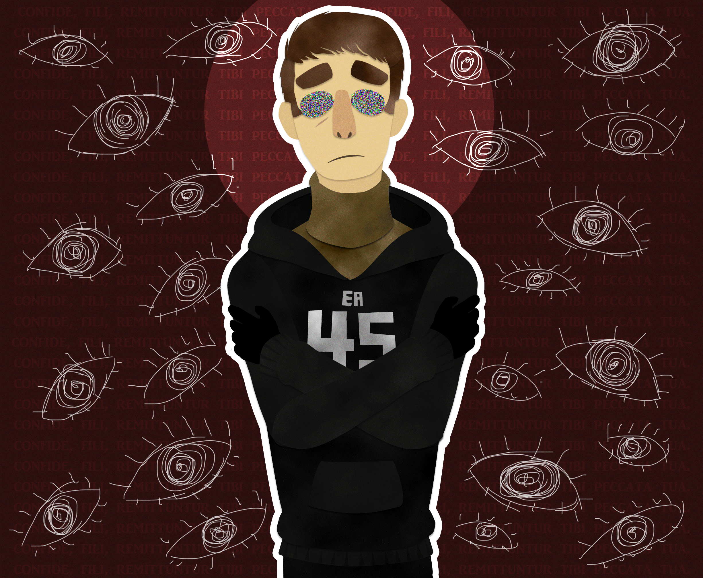 http://murderouscrows.deviantart.com/art/16-412132816(Also, a question for ruMpel; does David actually have a neck bruise that he hides with his sweater? Or is it something that fans have made up/given him?)